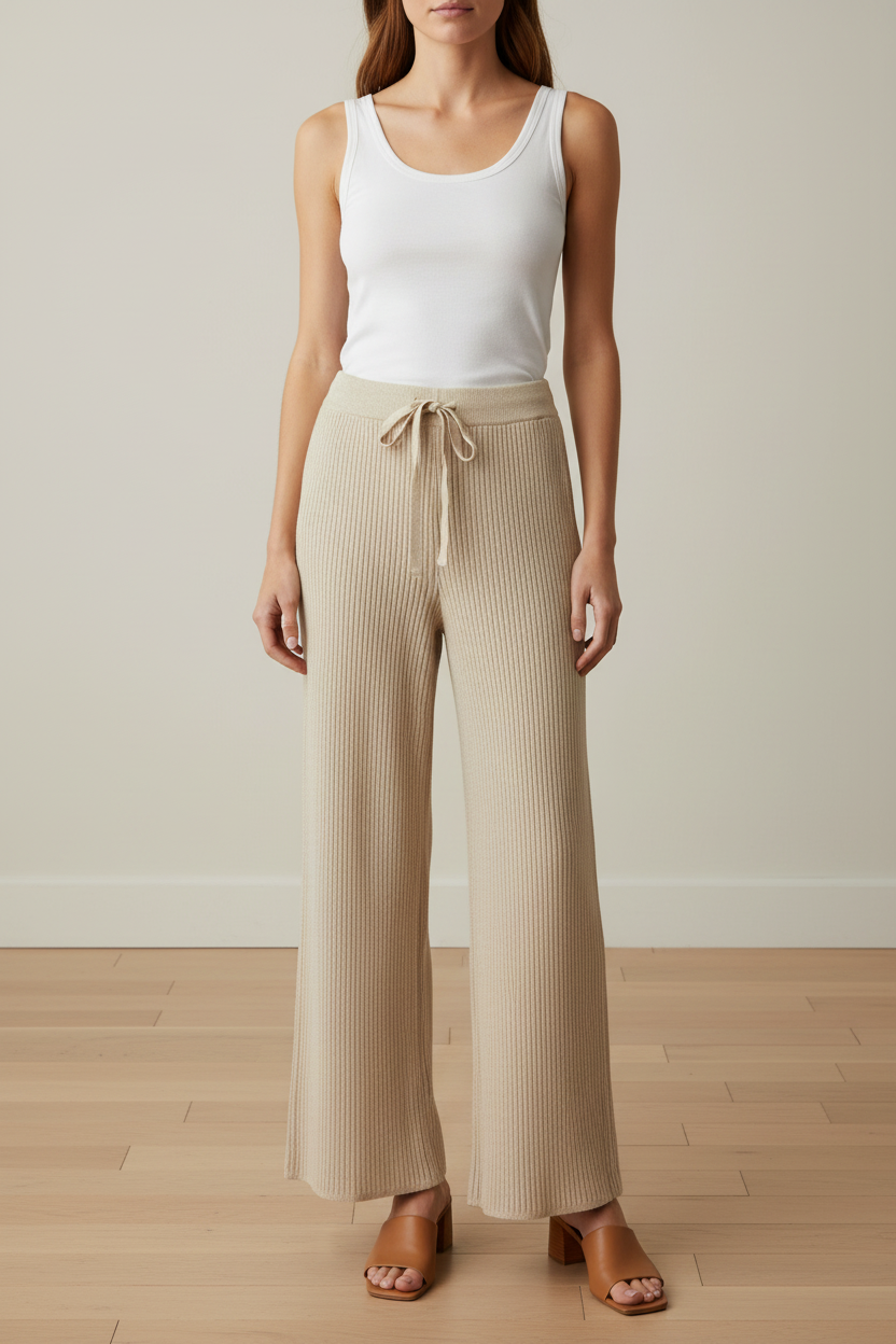 Experience the perfect blend of comfort and effortless style with these Beige Ribbed Knit Lounge Pants, crafted for women who love relaxed yet refined everyday wear. Tailored with a soft ribbed texture, these pants offer a cozy feel while maintaining a polished and flattering silhouette. The neutral beige shade adds a timeless touch, making the piece incredibly versatile for all seasons.