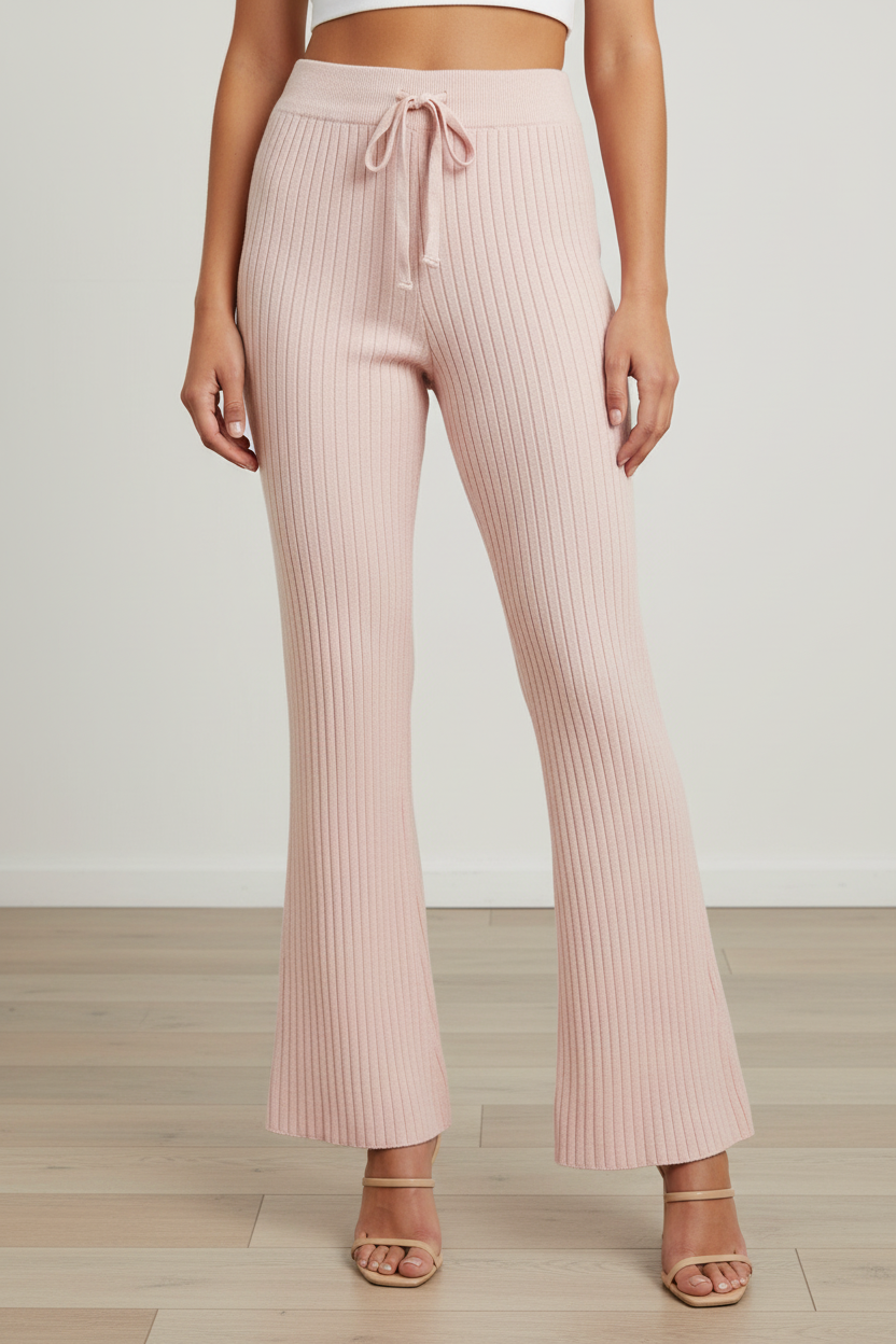 Beige Ribbed Knit Lounge PantsBlush Ribbed Knit Flare Pants