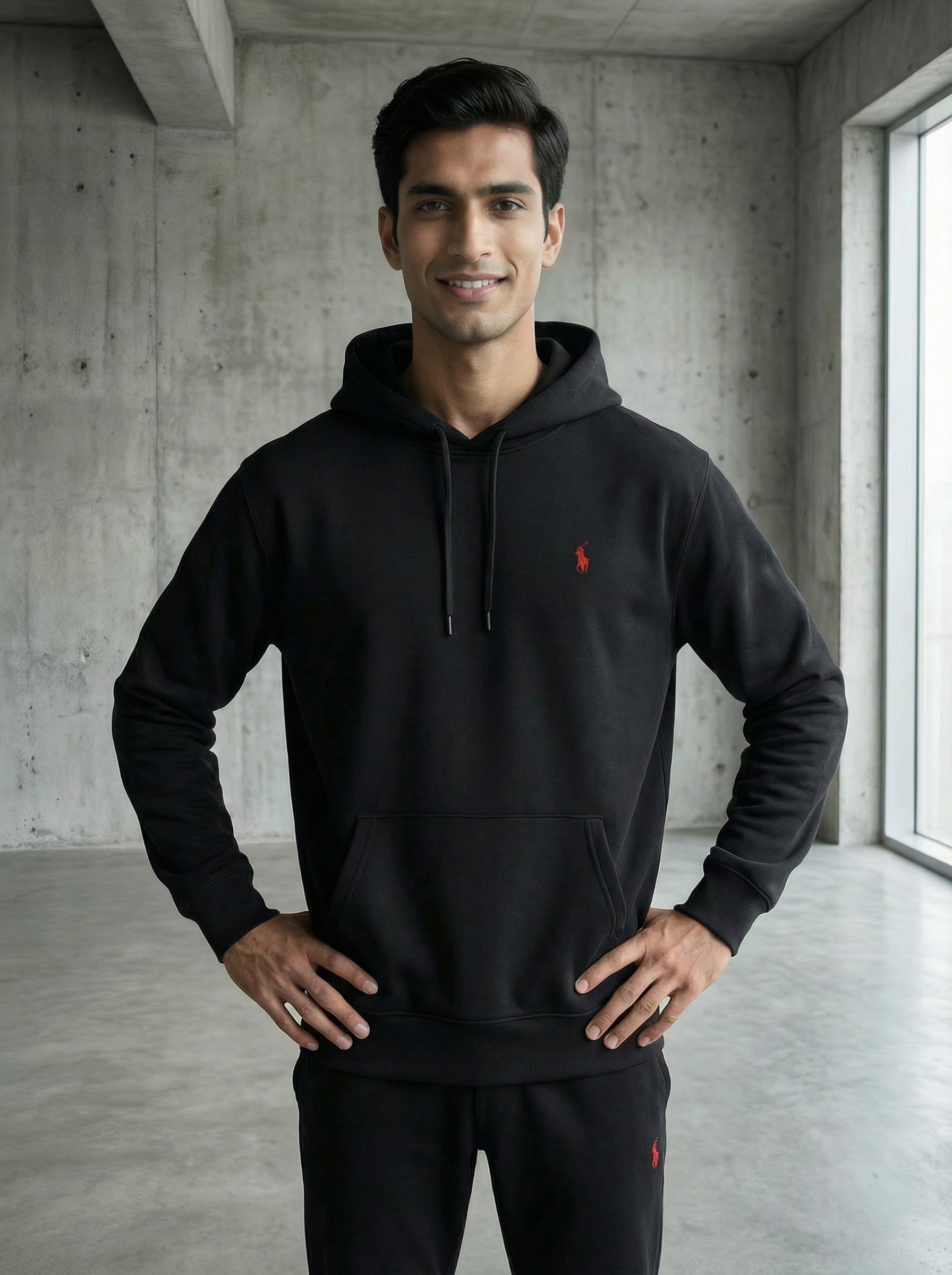 Elevate your everyday look with the Midnight Black Signature Hoodie—a perfect blend of comfort, simplicity, and premium street style. This sleek black hoodie features a soft, smooth finish and a bold red embroidered logo that adds a touch of sophistication. Its relaxed fit, spacious front pocket, and adjustable hood make it ideal for daily wear, workouts, casual outings, or travel. Designed for those who love minimalism with a hint of luxury, this hoodie brings effortless confidence to any wardrobe. A timeless essential for every modern man.