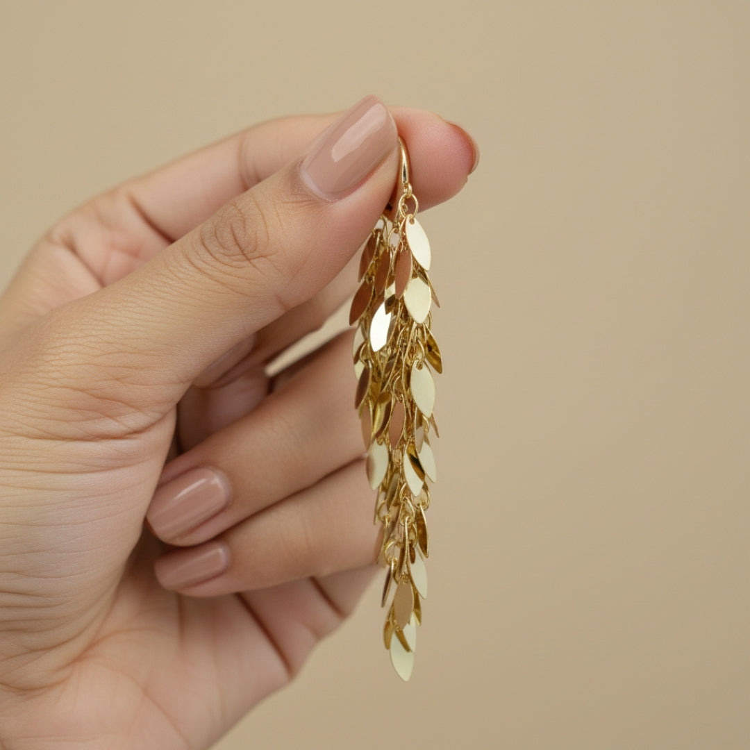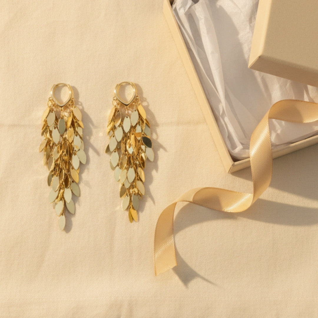 Crafted to catch the light and highlight your natural radiance, these earrings symbolize confidence, femininity, and artistic craftsmanship. They are not just accessories—they are expressions of personality, charm, and elegance. Wear them to weddings, parties, or special gatherings and let your style speak for itself. The Golden Leaf Cascade Earrings make the perfect gift for loved ones or a luxurious addition to your own jewelry collection. Let your beauty shine with every step you take.