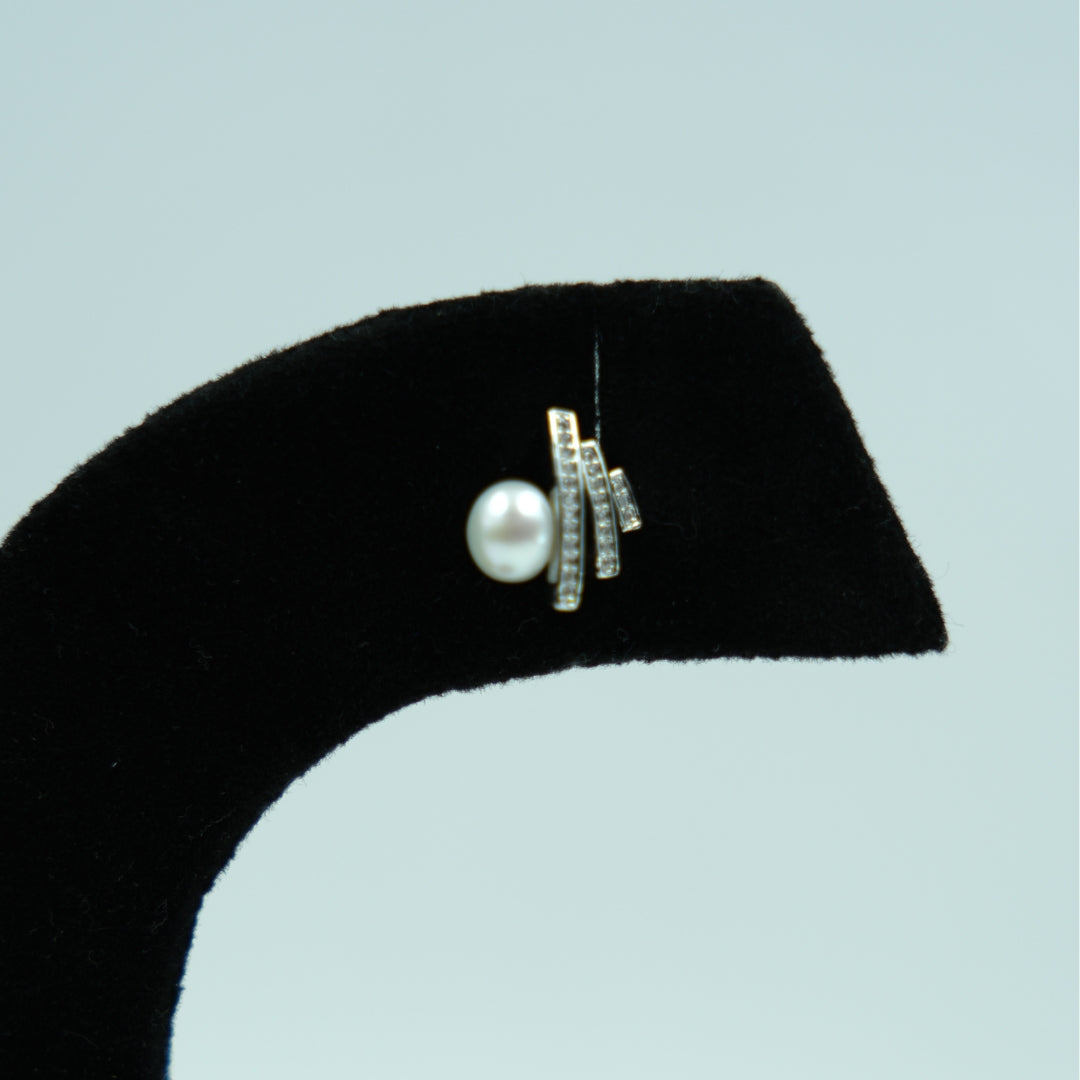 Luna Spark Pearl Studs are a perfect blend of contemporary design and timeless elegance. These stunning earrings feature a luminous pearl nestled gracefully behind sleek, crystal-studded bars arranged in a modern layered pattern. The polished silver-toned finish enhances the brilliance of the crystals, while the soft glow of the pearl adds a classic, feminine touch. Together, they create a refined accessory that feels both modern and graceful.