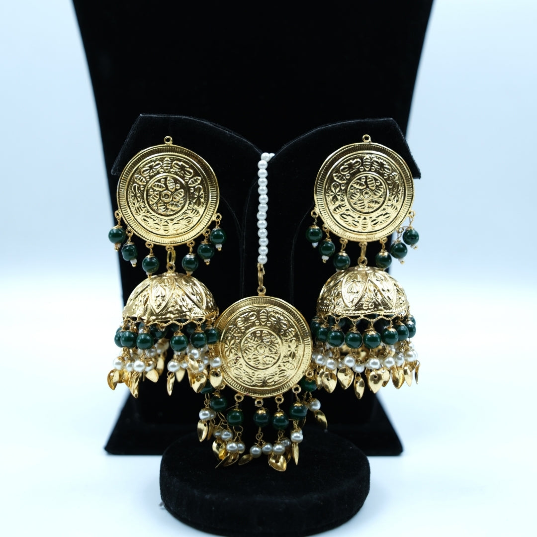 Embrace the beauty of timeless tradition with the Majestic Coin Pearl Choker, a statement piece designed to reflect regal charm and cultural richness. This exquisite choker features stunning oversized gold-toned coin motifs, each etched with intricate traditional patterns that capture the essence of heritage craftsmanship. The bold coins are beautifully complemented by deep emerald-green beads and lustrous pearl droplets, creating a striking balance of color, texture, and sophistication.