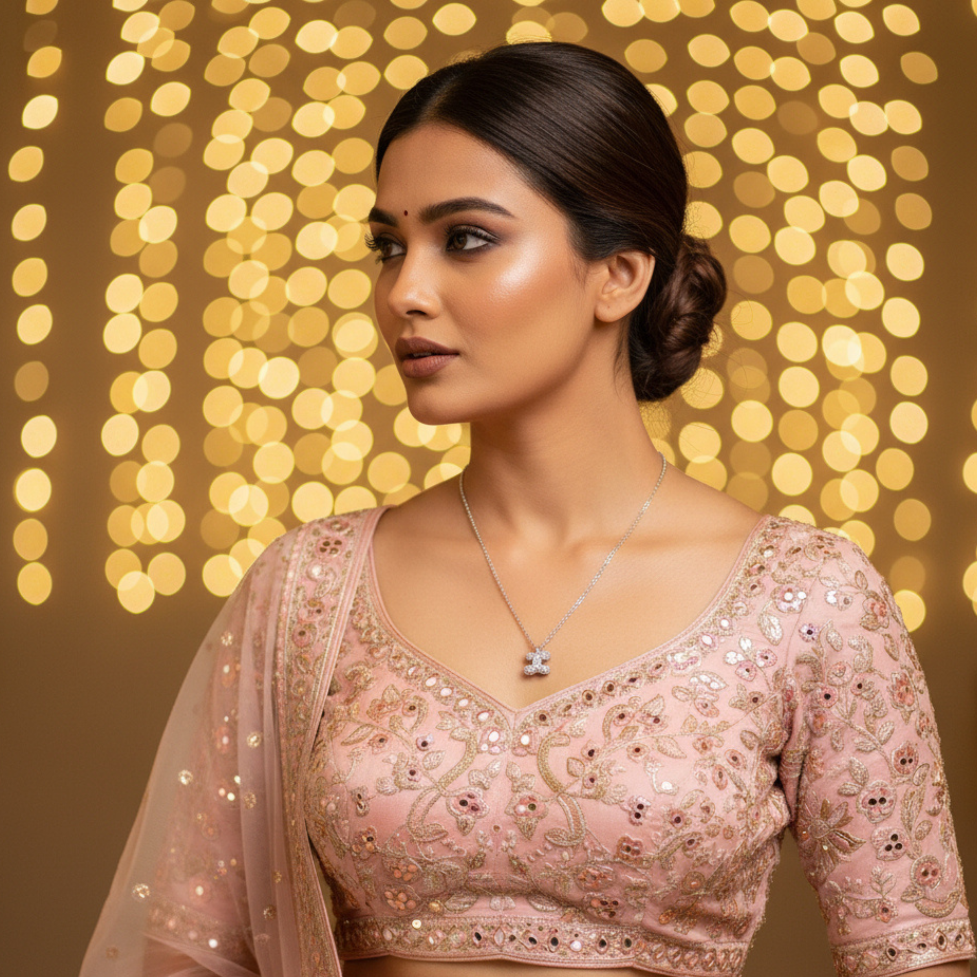 Suspended on a delicate silver-toned chain, the pendant rests gracefully at the collarbone, making it perfect for daily wear as well as special occasions. The clean lines and polished finish ensure it pairs seamlessly with casual outfits, office wear, or evening ensembles. Whether worn alone for a subtle statement or layered with other necklaces for a trendy look, this pendant adapts effortlessly to your personal style.