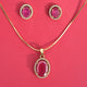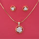 Encased in a smooth gold-toned frame, the gemstone’s faceted surface reflects light beautifully, creating a soft yet captivating sparkle. The pendant hangs gracefully from a slender, polished chain that rests comfortably along the neckline, making it ideal for both everyday wear and special occasions. The matching earrings echo the pendant’s clean design, ensuring a balanced and elegant appearance without being overpowering.