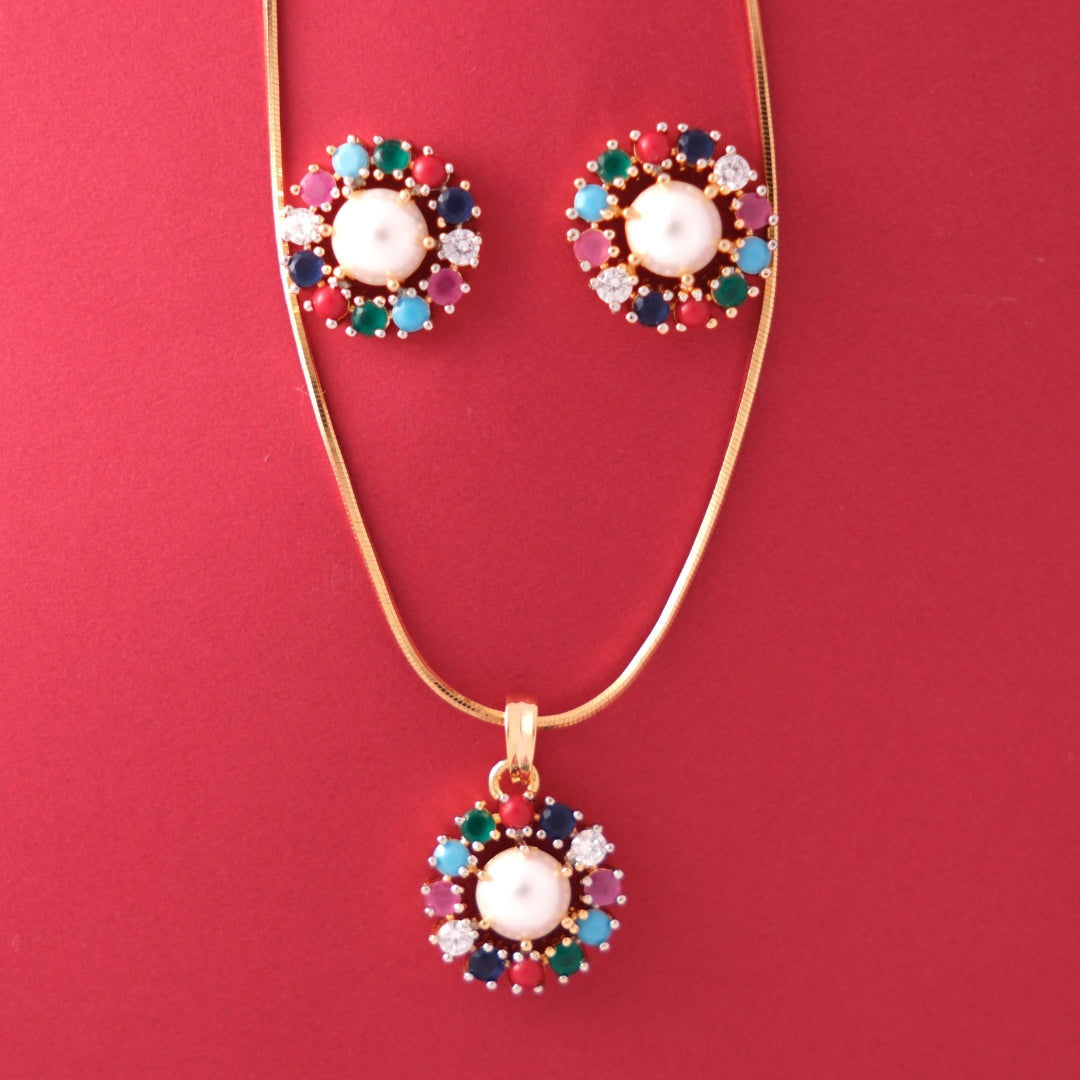 Pearl Radiance Pendant SetNavratna Pearl Radiance Set