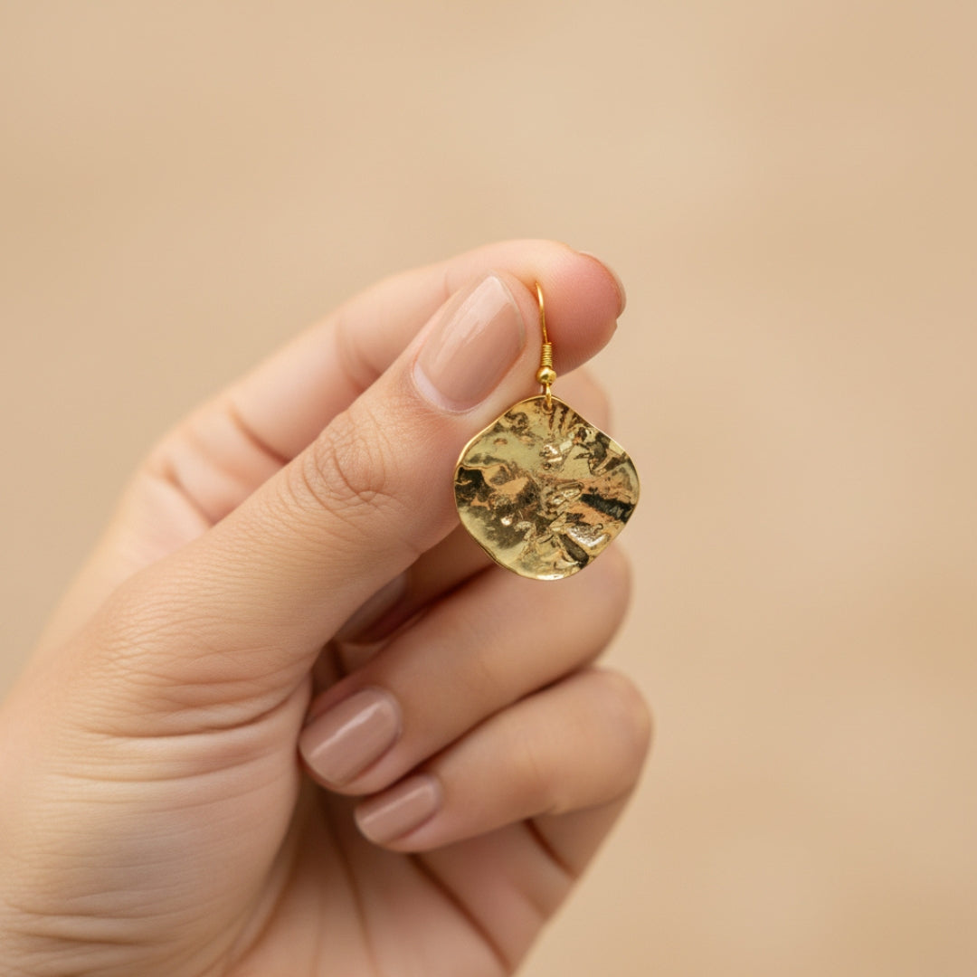 Introducing the Aurora Gleam Gold Stud Earrings, a perfect blend of modern artistry and timeless elegance. Designed for women who appreciate understated luxury, these earrings feature a softly contoured square shape with a beautifully textured, hammered gold finish. The organic surface reflects light from every angle, creating a subtle shimmer that enhances your natural glow without overpowering your look.