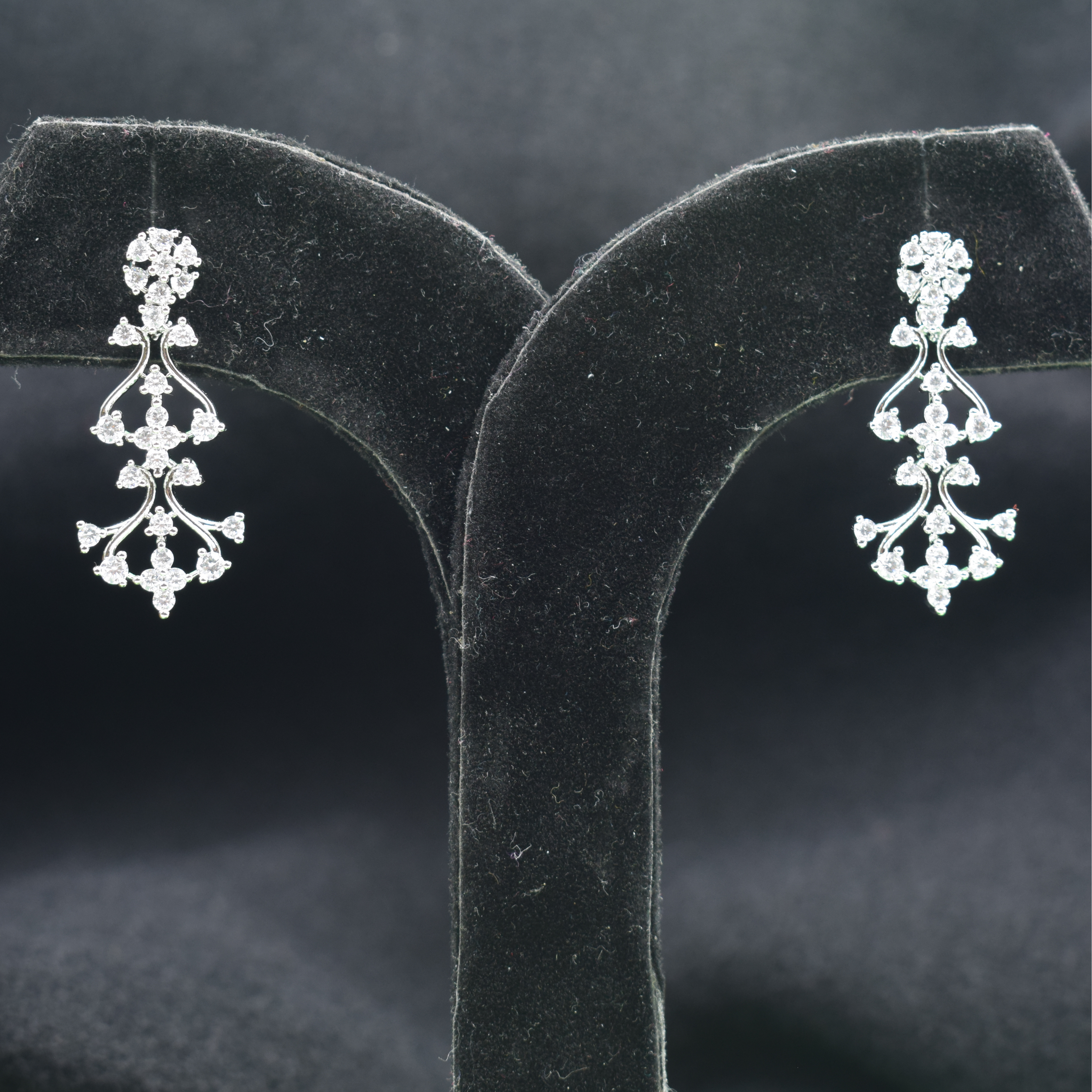 The necklace is designed with precision-cut, high-shine crystals set in a silver-toned finish, forming a symmetrical vine motif that sits comfortably and beautifully on the collarbone. Each crystal catches the light effortlessly, adding a subtle yet luxurious glow. The matching drop earrings mirror the same vine-inspired design, offering perfect balance and harmony to the overall look.