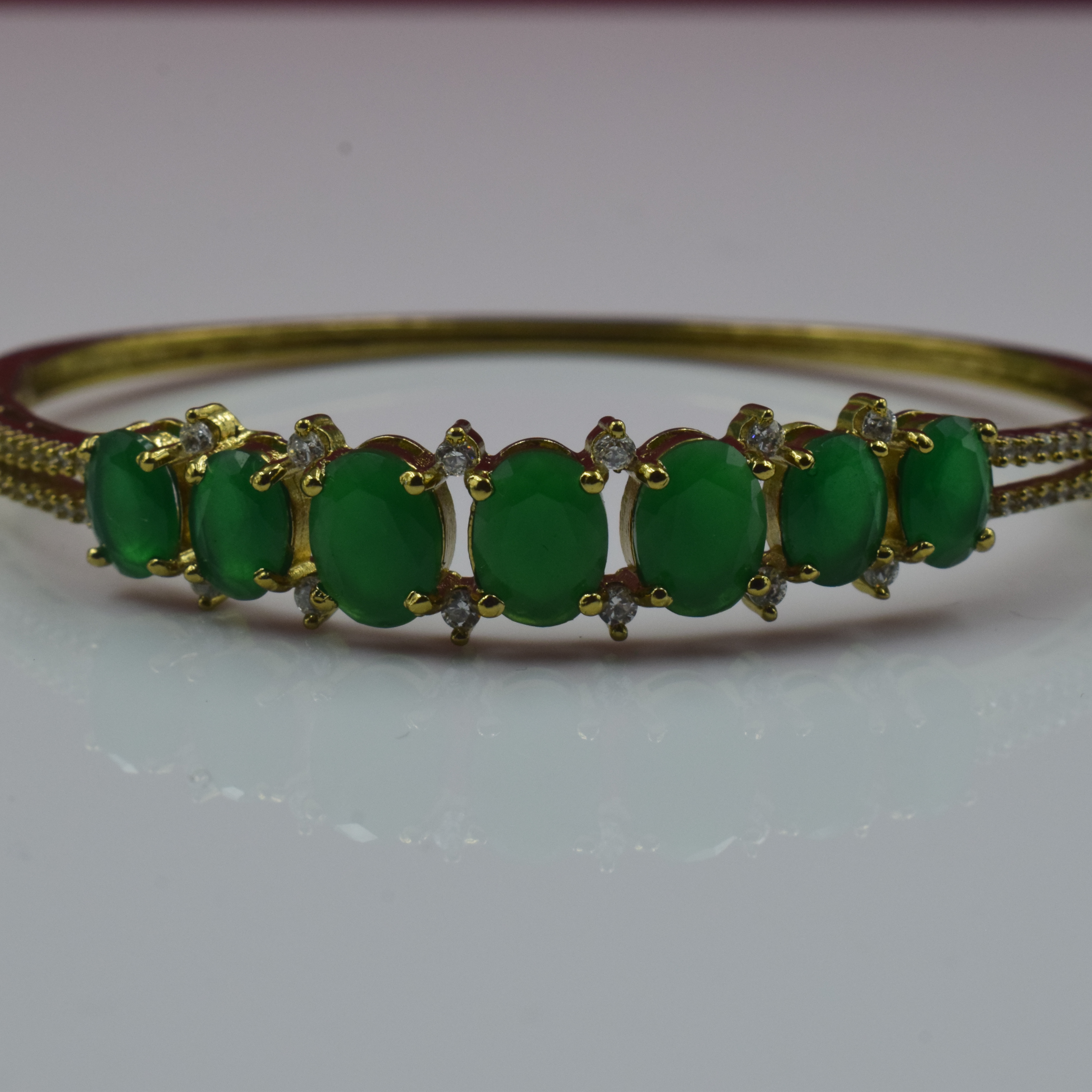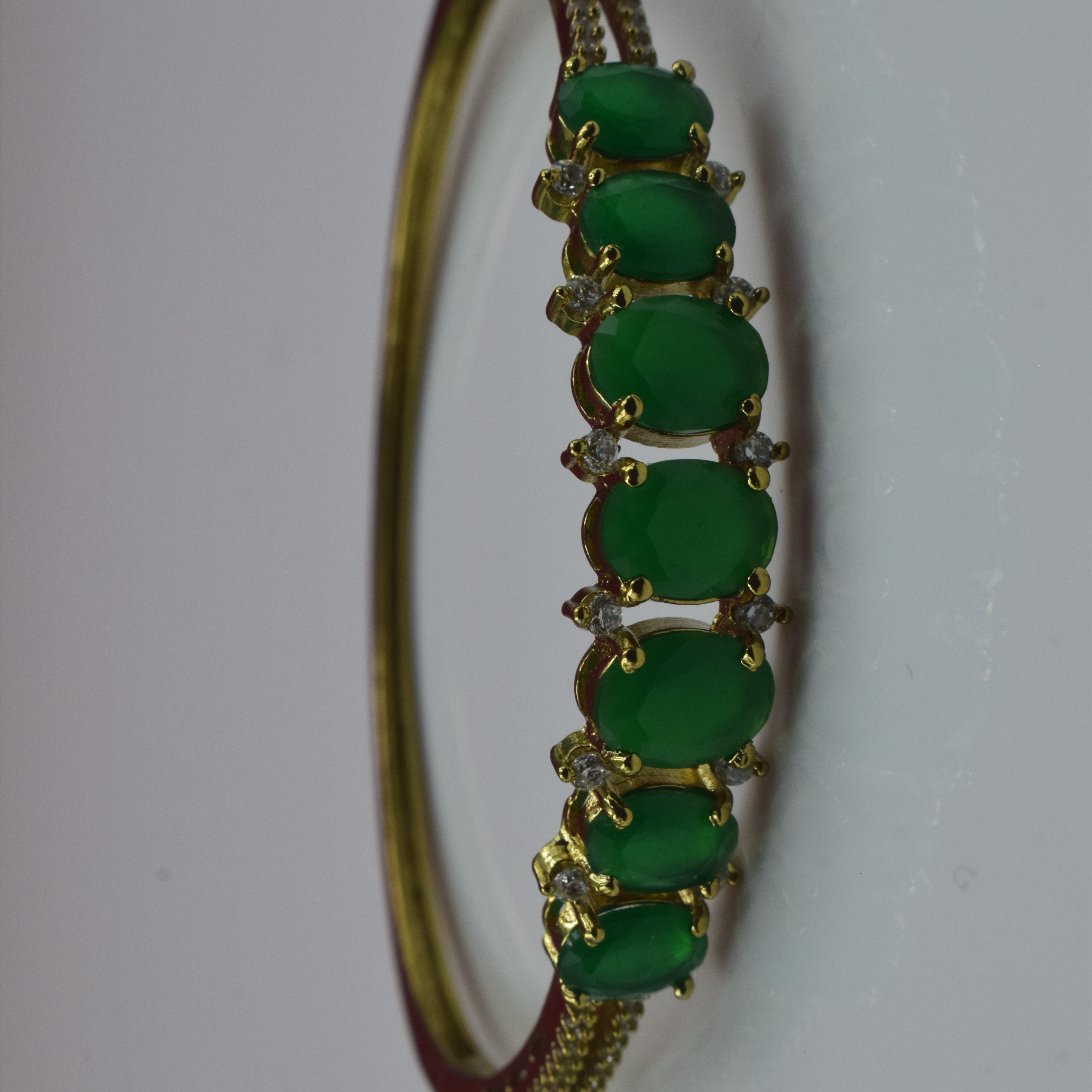 Perfect for weddings, festive celebrations, parties, or formal gatherings, the Emerald Grace Gold Bracelet pairs beautifully with traditional ethnic wear such as sarees, lehengas, and salwar suits. It also complements contemporary outfits, adding a pop of color and sophistication to dresses, gowns, or even elegant office attire.