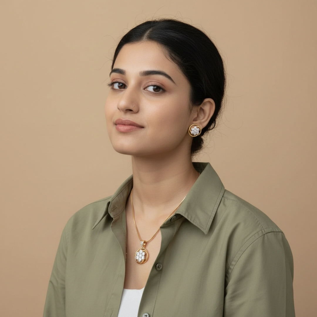 Ideal for weddings, festive celebrations, parties, and evening gatherings, the Floral Glow Diamond Set complements sarees, lehengas, gowns, and chic western outfits effortlessly. Its versatile design makes it a wonderful choice for women who appreciate subtle glamour without excessive ornamentation. Whether worn as a statement piece or gifted for anniversaries, birthdays, or special milestones, this set reflects timeless beauty and refined taste. Lightweight, graceful, and radiant, it is more than just jewelry—it is a celebration of femininity, elegance, and everlasting sparkle that enhances every moment you wear it.