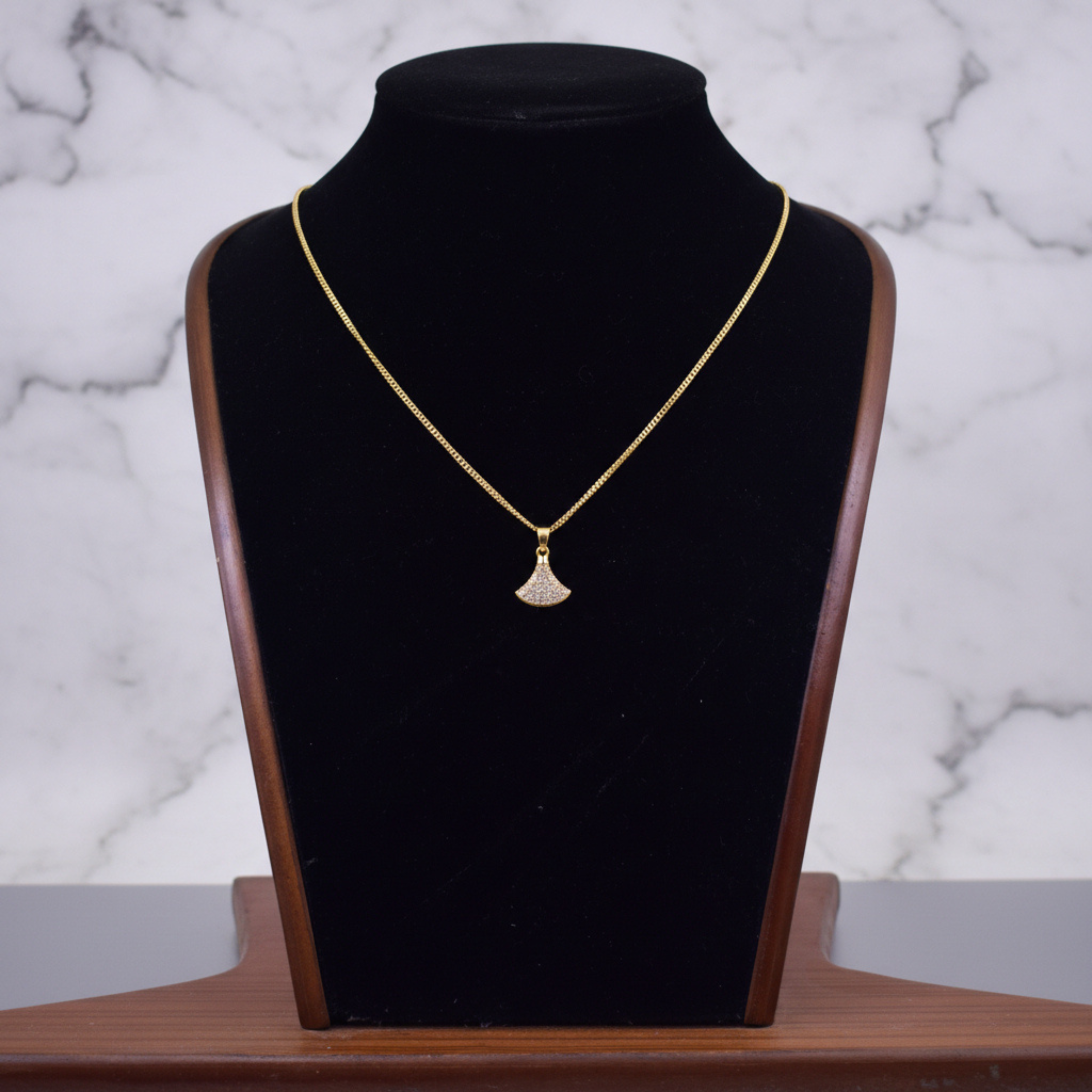 Crafted with attention to detail, the pendant’s polished finish and stone-studded surface reflect light delicately, creating a soft glow that elevates any ensemble. The secure clasp ensures a reliable fit, while the durable construction maintains its shine and charm over time. This piece can be worn solo for a minimal look or layered with other necklaces to create a modern, fashion-forward style.