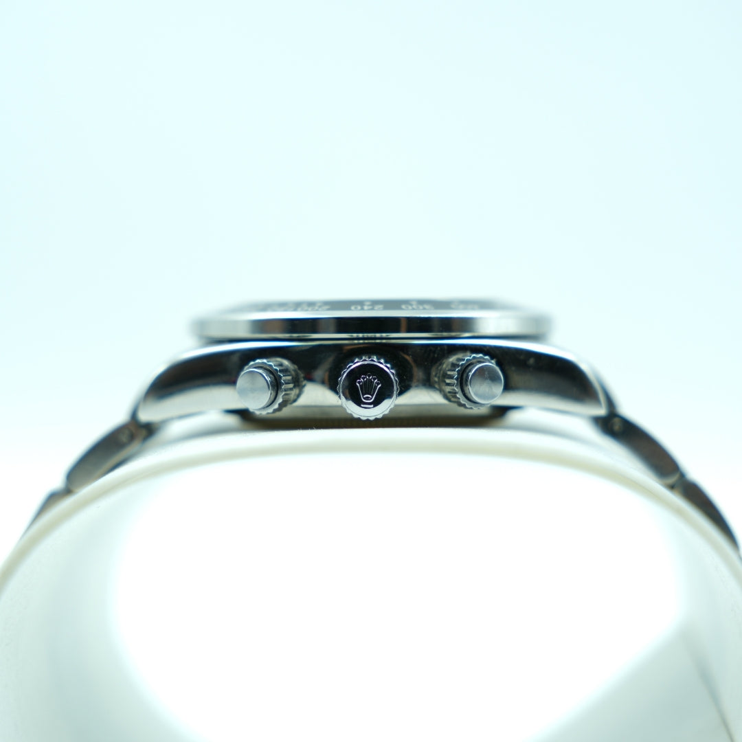 The robust stainless steel case and bracelet add strength, durability, and a refined industrial charm. Its polished bezel marked with tachymeter units enhances its sporty character, making it ideal for enthusiasts who appreciate chronograph functionality with a contemporary twist. The multi-dial layout is clean yet visually striking, giving you optimum readability and a high-end look. The luminous hands ensure clarity in low-light environments, while the chronograph buttons provide smooth and responsive operation.